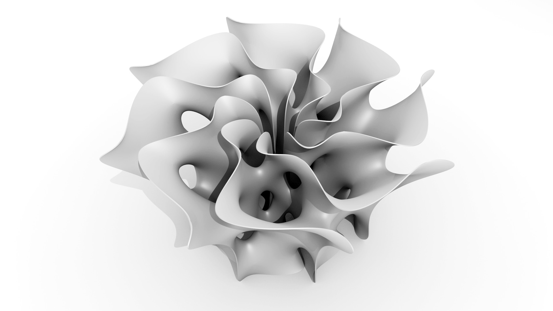 A gyroid is an infinitely connected triply periodic minimal surface (as defined by wikipedia). They’re also really easy to make and look really cool too. I was inspired to model one after having seen several versions on shapeways. They are simply a repeating minimal surface primitive, stacked on top of each other. This particular version is 16 of those primitives arranged end to end, stacked 2 high, rotated around a central pivot point and stretched to create the undulating flower surface you see above.
