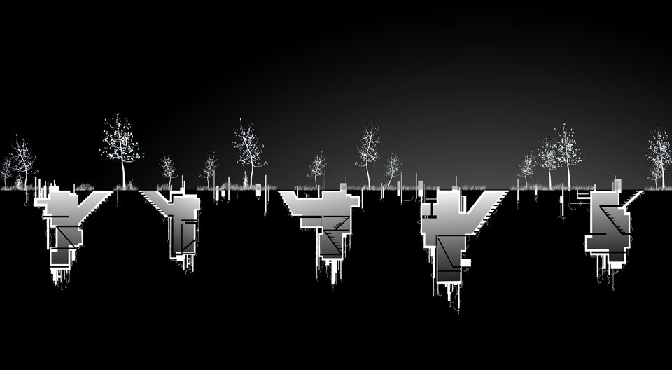 Implant design is a twist on the concept of outdoor living. It looks into the future and replaces the architectural density we currently associate with large urban areas. Instead of building up we are building down. Homes are built underground; no longer do we have a ‘back yard’ because our outdoor living space is above us… and is therefore much bigger, more open, and many would argue more beautiful.