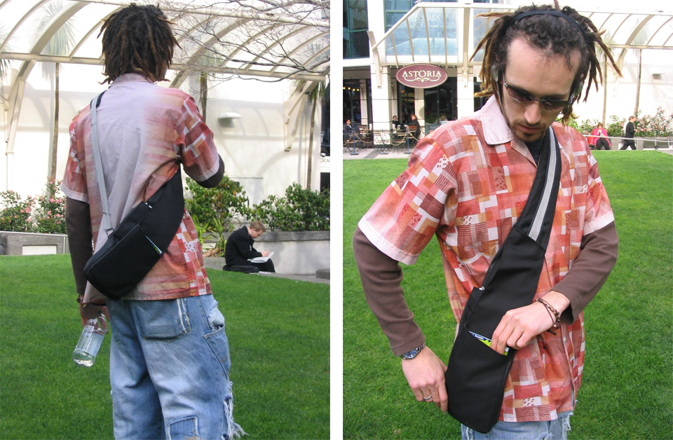 This was a 2 month long project I completed during the 3rd year of my undergraduate degree in 2005. Macpac approached our class and presented us with the brief ‘Urban Freedom’. We were to create our own project scenario describing what ‘Urban Freedom’ meant to us, and to then develop a fully functional carry bag with this idea in mind.